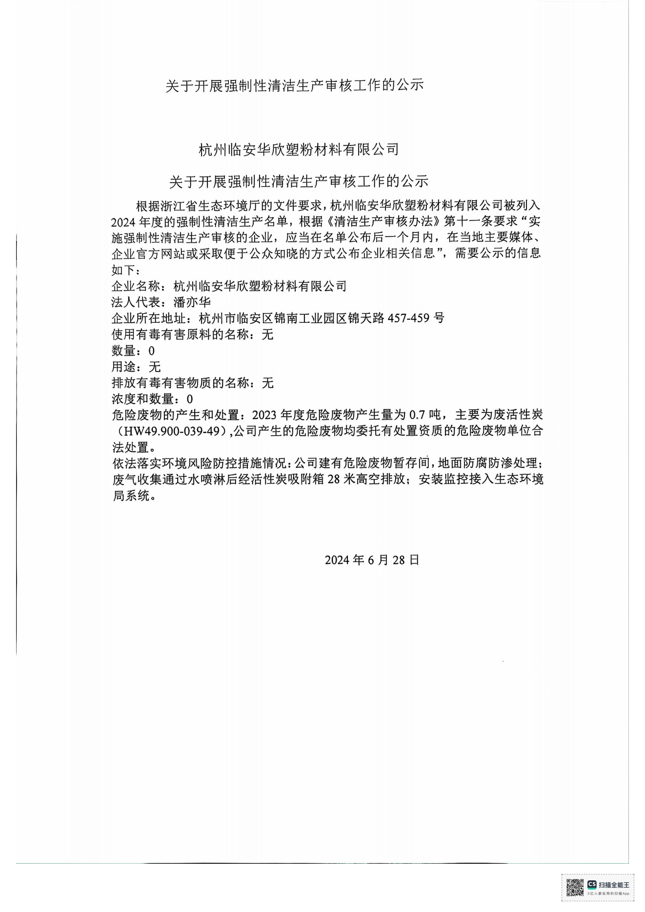 關(guān)于開展強(qiáng)制性清潔生產(chǎn)審核工作的公示